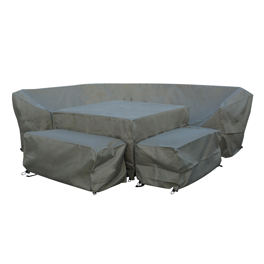 Protect your Bramblecrest Curved Corner Sofa Set from frost, bird droppings or tree debris with this specific fitting protective cover set. Made from a durable polyester, these covers will shield your furniture from extreme weather and unwanted staining. Pull lock toggle cords are to be found at the corners to keep them secure in windy conditions.
