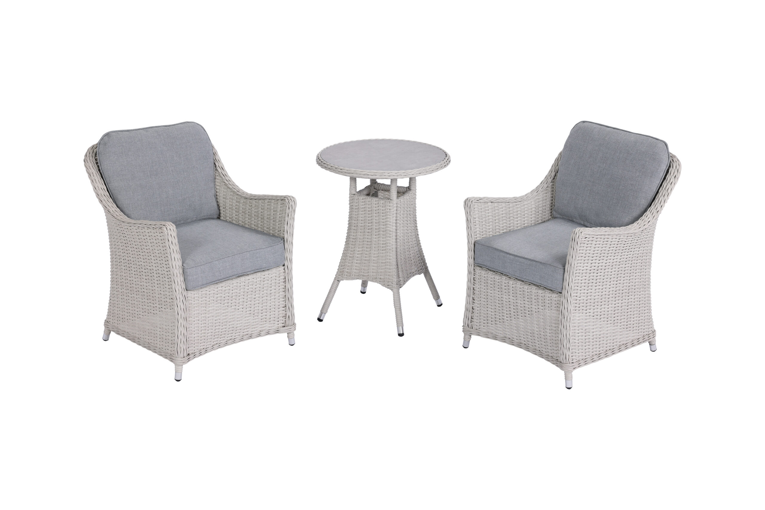 - Set includes: 1 x 70cm fixed height Bistro Table, 2 x Dining Chairs